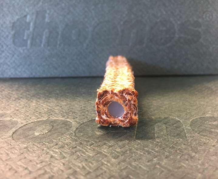 The thoenes® P646...SK Novoloid package consists of novoloid fibre yarn (phenol aldehyde). The core can be made with a silicone cord.